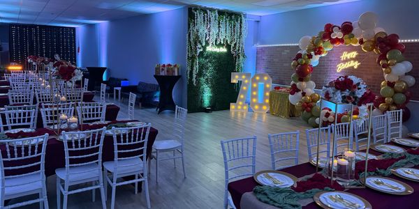 Host your main event with elegance and ease while enjoying the warmth and comfort of The Living Room. Celebrate in a dedicated event space, then relax or recharge in our inviting Living Room setting. Amenities include a greeter, a stainless steel buffet system with chafers and food warmers, LED lighting, and a wireless sound system. Décor packages are also available upon request to personalize your experience.